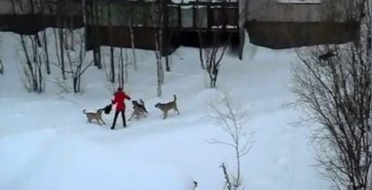 Rusya'da bahtsız kadın kışkırtılmamış saldırının başıboş köpekler bir grup tarafından kabul.. Neyse ki yakında yardımcı olacak bir erkek koşar.