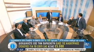 'Morning ANT1' programının sunucusu Giorgos Papadakis ile ND milletvekili arasında şiddetli kavga, Adwni Georgiades (25/3/2015).