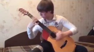 Genç gitarist tarafından ünlü şarkının amatör kapak