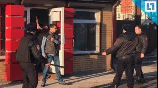 Rusya (Rostov): Bir dükkanın önünde bıçakla bir kişinin tutuklandığı
