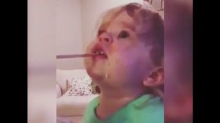 Bebek ilk Japon baharatlı sebze wasabi tadı reaksiyon. Çok komik bir tepkidir.