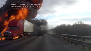 Bir şehir cadde Voronezh Rusya 30 Kasım'da, Bir kamyonun tekerleği kopması ve bir arabanın yoluna rulolar. Sürücü bir manevra yaparak kaza önlemek için çalışır, ama düşmeler [...]