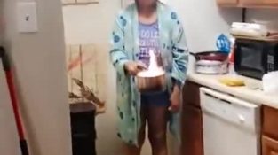 Darwin Ödülü, hatırlatma yağ yanarken su dökmeyin, ateş söndürülmeli (örneğin bir kapak veya nemli bir bezle)