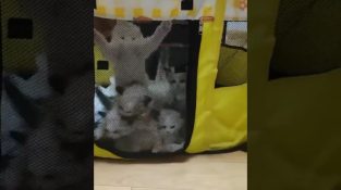 Altı aç kedi yavrusu mamalarını yemek için sabırsızlanıyor.