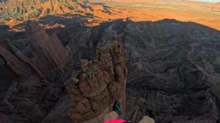 Amerika Birleşik Devletleri'nin Utah kentindeki Fisher Towers'tan, Andy Lewis bir kuleden diğerine ilk üçlü BASE atlayışını gerçekleştirdi.