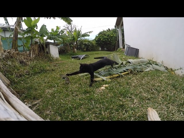 Смарт-кішка ховається під листям, чекають, щоб зловити птаха.