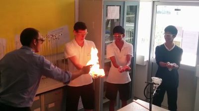 Під час курсу хімії, Студенти грають грі делікатна flaming пропан бульбашки.