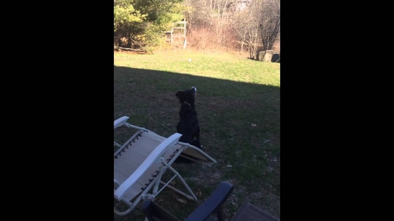У пошуках біла куля, що впадав у бос, Синій, mpornter kolei, Він вважає, що гра застрягла в небо, дивлячись на місяць. Розчарований тим, що він не може спіймати м'яч, Синій продовжує гавкати і запустити в саду, залишаючись на місяць з свого ока.