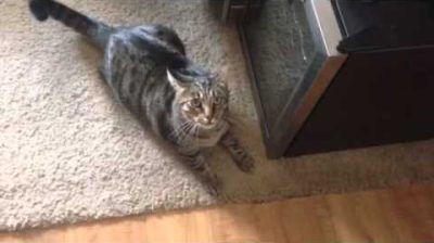Жінка погладила бездомну кішку. повернення додому, Кішка не оцінили на всю цю невірності, як тільки обнюхав її руку відразу розсердилася і спробувала подряпати. Жінка пояснює, що дві кішки були в бою раніше, отже, реакція.