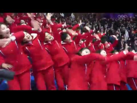 Північнокорейські прихильники на зимових Олімпійських іграх 2018 у Пхьончхані, ритмічно кричати з трибун. Їх вибір часу настільки досконалий, що вид трохи страшно.