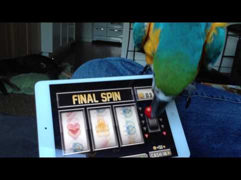 наш папуга, Кіті, відіграє Заключний спин Jetpack Joyride. Вона любить червоний колір, тому, коли вона побачила, що я грав, вона хотіла отримати в акції.