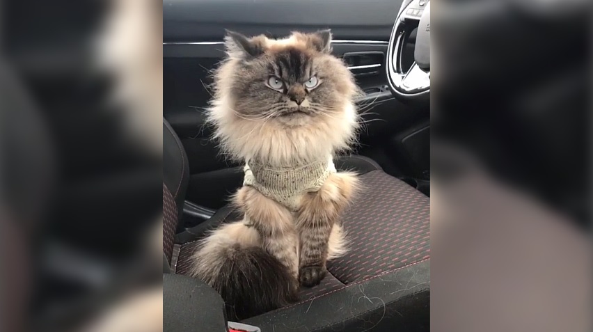 Кішка не здається дуже задоволена одяг одягла власник,.