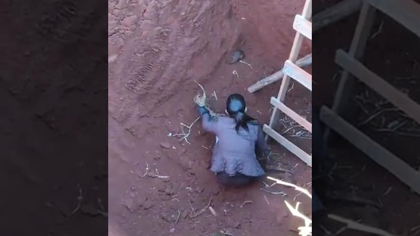 Und der Hund dachte, es wäre eine Ratte. Dann stehen die Kinder gefährlih nahe bei der Grube.