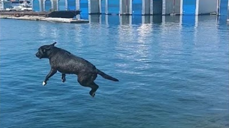 У Ванкувері, Канада, перехожий записує, як собака пірнає з великої висоти у воду, щоб зловити палицю. Власник пояснює, що йому подобається цим займатися. Це почалося, коли це було цуценя, і поступово стрибало на більшу висоту, як на відео. Собаку усиновили з притулку, і вважається, що це результат схрещування пітбуля з лабрадором.