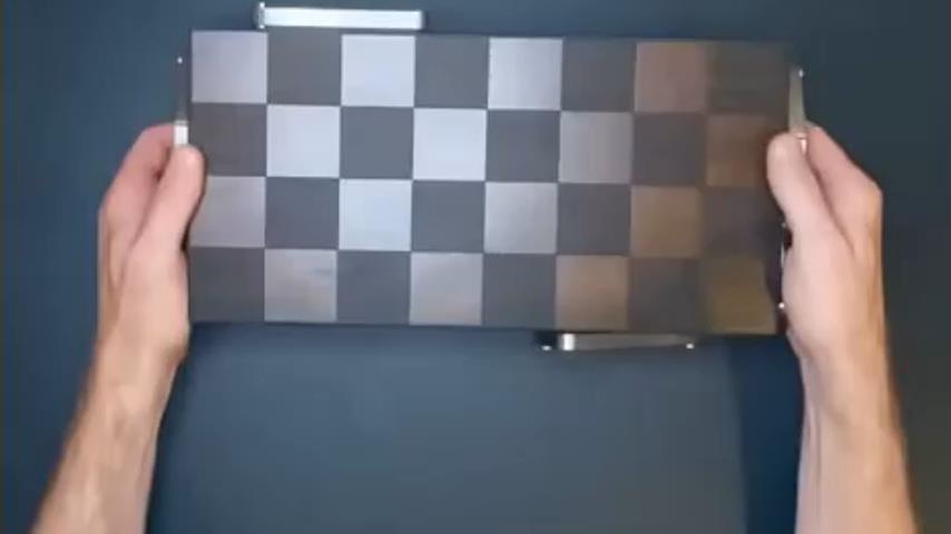 Складана шахова дошка, яка розгортається двома різними способами та зберігає всі фігури в прихованих розділах.