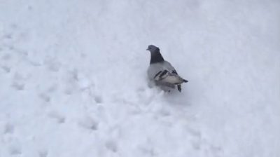 У саду в Анкарі, Туреччина, хтось записує деяких голубів на відео. Один з них починає свій зліт, робить приємне занурення і падає з головою в сніг.