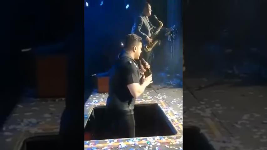 Під час концерту, на механічному майданчику зі сцени виходить співак. Але несправність механізму поверне його туди, звідки він прийшов.