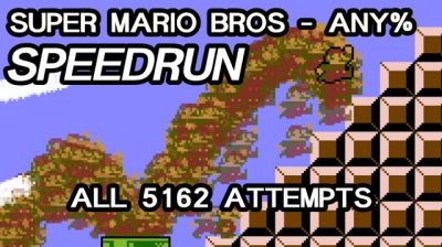 Super Mario Bros (NES) speedrunner зібрав усі свої спроби 5162 в одне відео, щоб показати всі невдачі, які можуть статися, коли хтось швидко запускає гру.