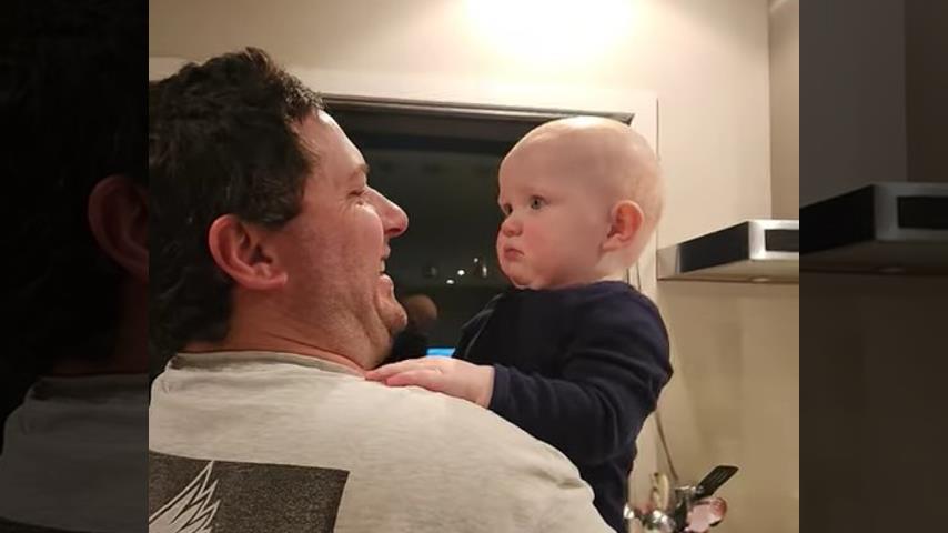 Тато поголився, і його маленький син бачить його вперше без бороди.