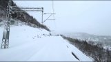 Співробітник на індійському поїзді викидає сміття з поїзда, коли він подорожує.
