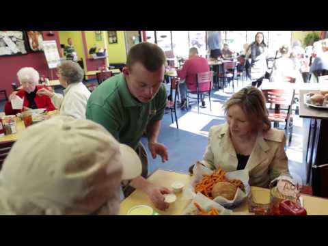 Тім Харріс, у ресторані власник Тім ’ s місце, Це єдиний ресторан власник з синдромом Дауна. Тім назад радості, він отримує від своїх клієнтів з магазину делікатесами, в обійми.