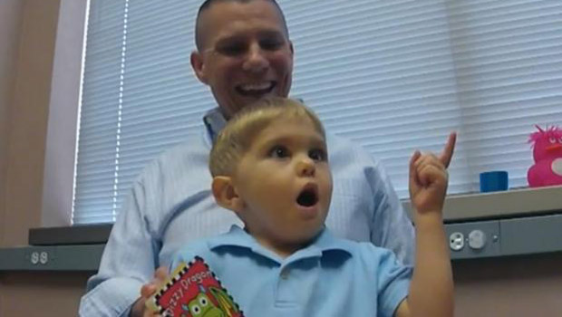 Мало зажим Грейсон народився глухий і слухає в перший раз на три роки голос батька. Слухання справи було відновлено за допомогою новаторських імплантату в головному мозку, після операції в університеті Північної Кароліни США.