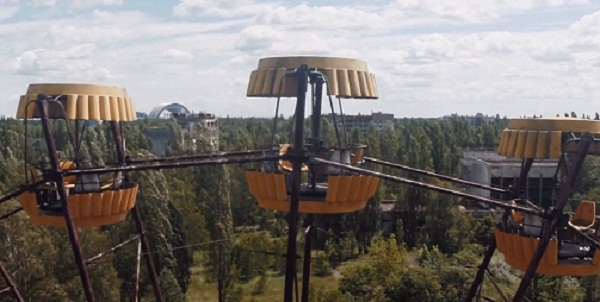 Британський журналіст Денні Кук мав змогу побувати у містах Прип’ять та Чорнобиль під час репортажу «Чорнобиль, руйнування, яке ніколи не закінчувалося', майже 30 років після великої аварії (26 квітня 1986 року). Польотів безпілотних drone над двома занедбаних міст Pripgiat (на відстані 3 км від АЕС) і Чорнобильської. Обидва міста-привиди не заселені, оскільки входять до 30-кілометрового радіусу безпеки., навколо на АЕС. Музика: Ханна Міллер – Земля обітована.