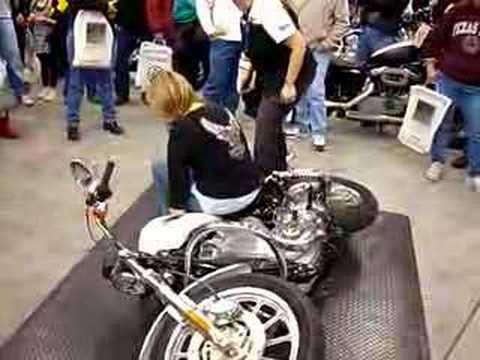 Леді пояснює, як підняти пропусканню або накладені над велосипеда, Це було в Клівленді Байк-шоу в ix-центрі
