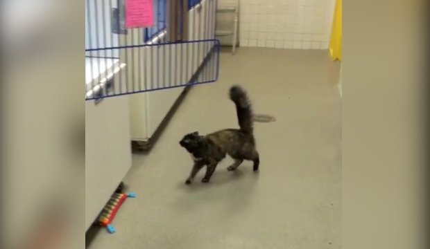 У ветеринарній клініці, кішка намагається залізти в клітку з. Для цього вам необхідно перейти на кілька дюймів, але це складніше, ніж здається, оскільки землю нещодавно насипали воском. У кожного стрибок, її ноги посковзнутися і не може керувати.