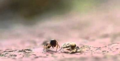 Мураха має пастці в веб-павука і намагається залишити. Маленький павучок, здається, бути насолоджуючись його. Але хто сміятися останнього?