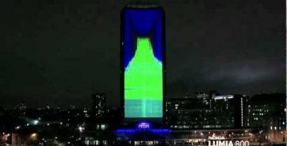 У контексті випуску нового мобільного телефону Lumia 800, Nokia організував цю видовищних подій на лондонському районі Millbank хмарочос.