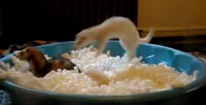 Деякі Тхори веселяться в басейні, наповнений пакувальні матеріали