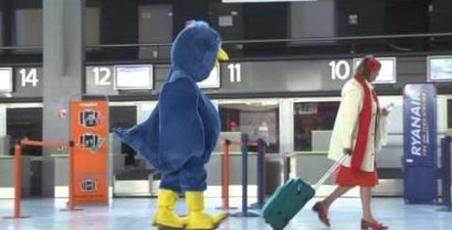 Гаяр Rémi повертає одягнений як птах/Twitter логотип і слідувати наполегливо випадкові люди.
