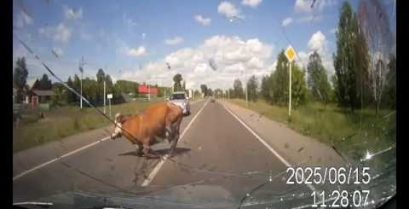 У Росії аварії водія запис з коровою, яка намагається протидіяти дивні апетити бика і недбало перетинає дорога. Згідно з посібником корови в порядку, [...]