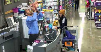Jono Прайор і Бен Бойс від на сатиричні шоу 'Jono і Бен в десять' в Новій Зеландії, покласти актор Роббі Magasiva витівки супермаркет клієнтами, Виконуючий обов'язки скарбника.