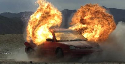 Постріл з М134 в автомобіль, в повільному режимі. У відео використовується електрична Діллон M134D швидкість стрільби Minigun 3000 снарядів на хвилину.