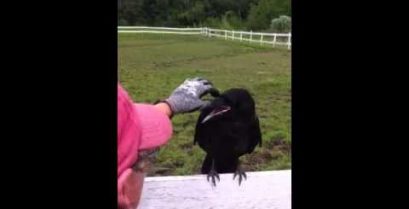 Ворона поранення деякі їжак голки, прийняти догляд власників ферми. Хоча очевидно, що болить, розумний ворон знає, що люди будуть допомагати і не намагаються літати [...]