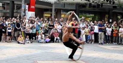 Дивовижні трюки з металу вінок (Сір колесо) від за людину з вулиці в Тайбей.