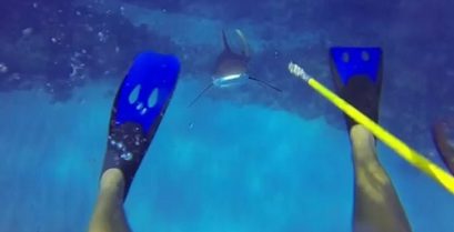 Дайвер Джейсон Димитрій піддається нападу акули на пляжі звук Френк Великий Кайман острів у Карибському басейні.
