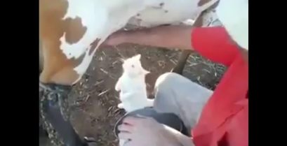 Спрагу кішка пити свіже молоко прямо з вим'я корів.