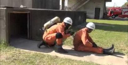 У рамках освітніх конкурсу, який перевіряє їх знань та їх готовність, Пожежники у Японії роблять різні вправи швидкості на пов'язувати вузли в мотузки.