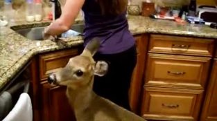 Кожного ранку, жінка приймає відвідувача з лісу. Молодий олень входить будинку без страху, насолодитися пляшку козяче молоко.