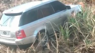 Драйвер застрягли в бруд з його Позашляховик. На щастя, може розраховувати на допомогу сильної людини...