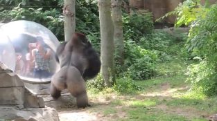 Горила зоопарку в Китаї, отримання нервової одного разу відвідувач намагається досягнути фото з її мобільний телефон.