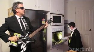 Комічний тріо Triton Група з Квебек, Канада, використовує одну гітару, щоб зробити хороший medley класичний рок-треки.