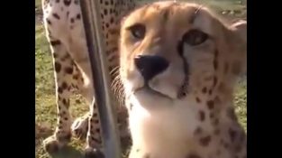 У притулку догляду Cheetah фонд охорони природи (CCF) Намібія Африка, Cheetah мяу як кішка просять їжі у людей.
