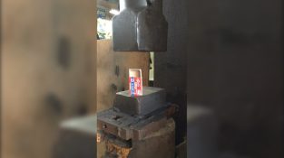 Коваль демонструє нашу відмінну точність, з якою управляє великий молоток металоконструкцію, м'яко закриваючи сірникову коробку.