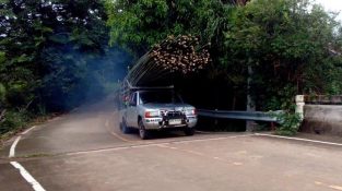 Людина за кермом фургона завантажений з бамбуковими паличками, на шляху Чаченгсау в Таїланді. Автомобіль було важко піднятися на гору з важким вантажем, таким чином, водій буде отримувати достатню кількість форумів [...]