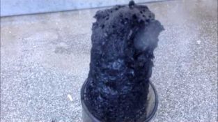 Тут ви можете побачити зневоднення цукру, хімічна реакція сірчаної кислоти з побутовим цукром.