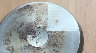 Залишки згорілого масла і жиру в горщику, прибирали дуже легко за допомогою лазерної гармати компанії LaserAge.